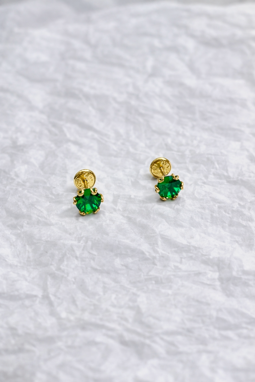 Topos en tono dorado con piedra verde esmeralda que iluminan tu look con un brillo elegante y sutil. Perfectos para usar todos los días o complementar un outfit especial.
